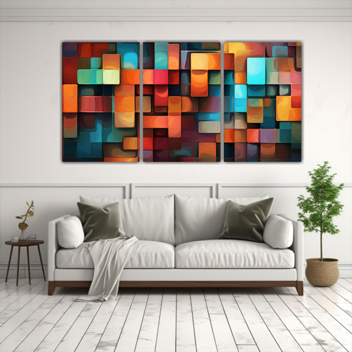 Línea De Papel Pintado Cuadrados Decorativos Tres Artes Con Vibrante Patrón Abstracto De Alta Calidad Estético