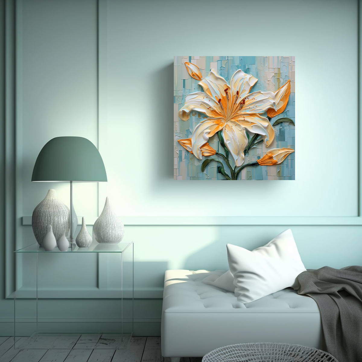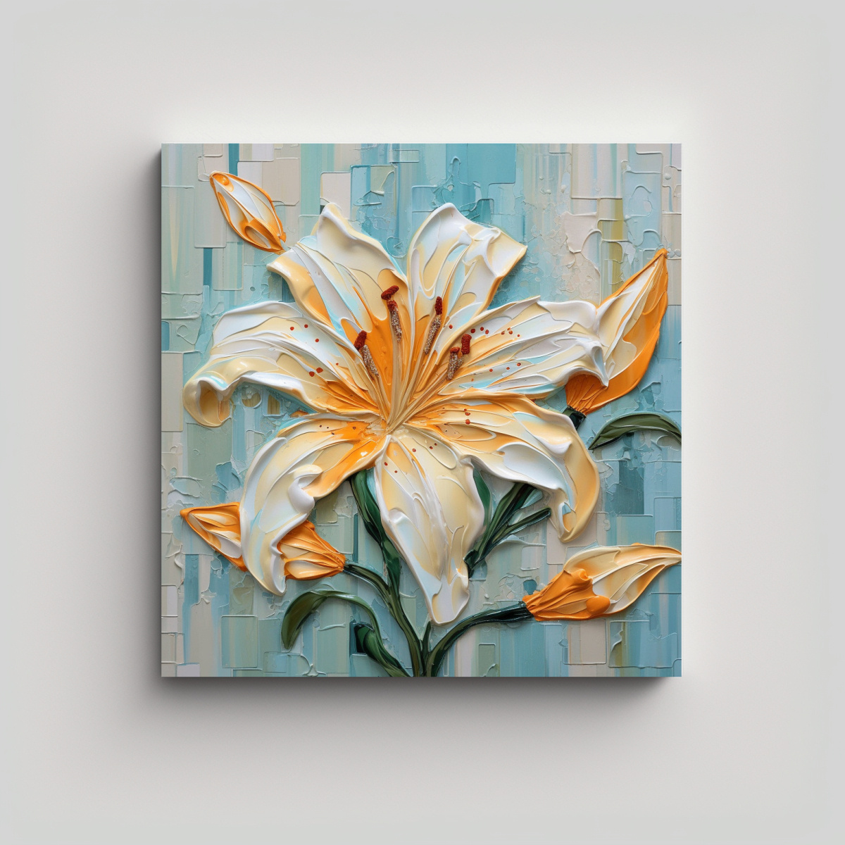 Lirio Colorido Con Pigmento Amarillo Obra Arte Decorativa En Lienzo
