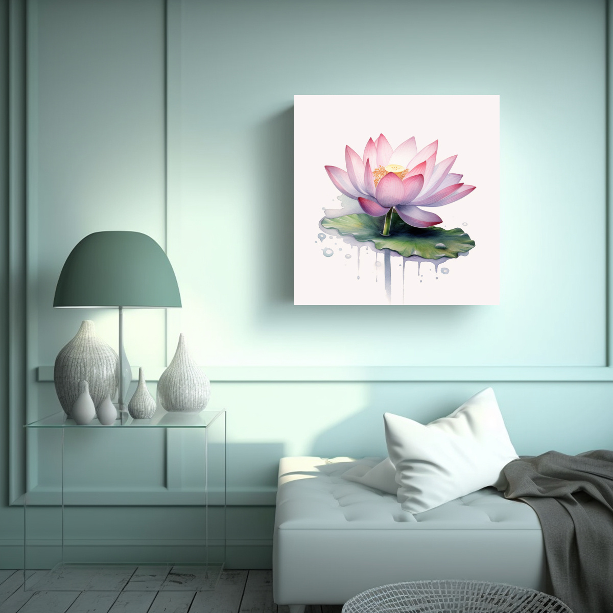 Loto Flotante En Agua, Estudio Movimiento, Pintura Deco Elegante