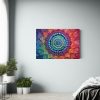 Este cuadro Mandala Collage Vibrante se vería espectacular en el centro de tu sala de estar, creando un punto focal de energía positiva Combínalo con cojines en tonos Coral y Lila para lograr una armonía cromática única