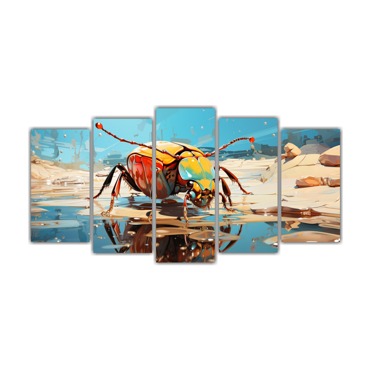 Motivo De Escarabajos En Colores Solares Y Azul Cielo Neo Arte Pop