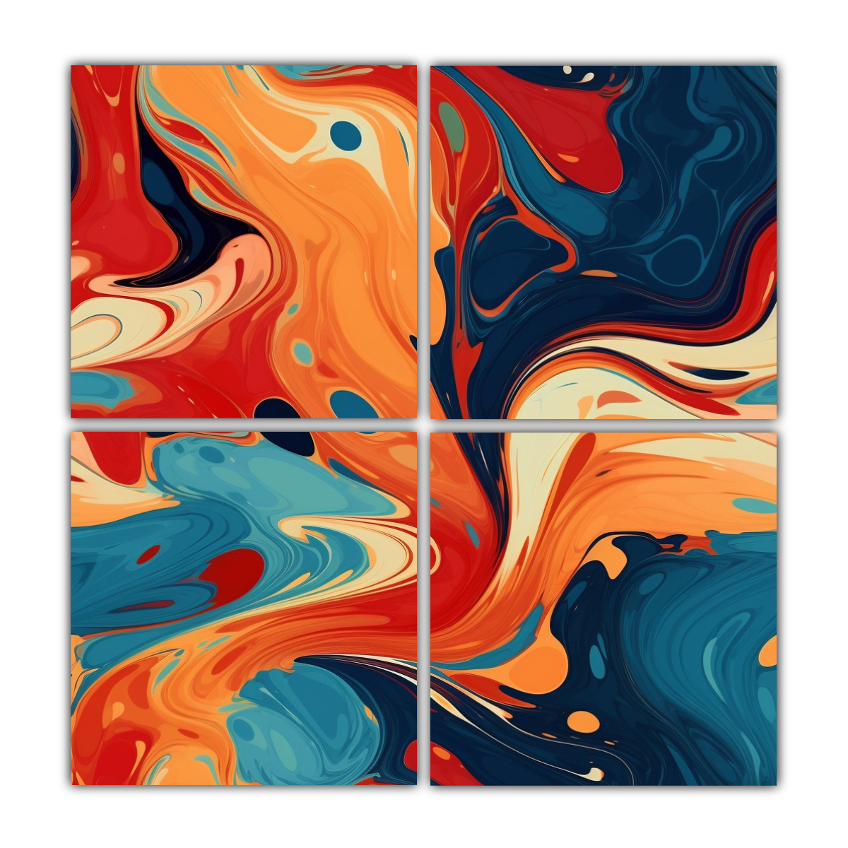 Este impresionante mural abstracto con 4 composiciones fluidart es perfecto para decorar tu sala de estar Colócalo en la pared principal, sobre un sofá de color neutro, para resaltar su belleza y crear un punto focal en la habitación Combina los colores del cuadro con cojines y accesorios en tonos similares para lograr una decoración armoniosa y moderna ¡No esperes más y adquiere este hermoso mural en DecoCuadros!