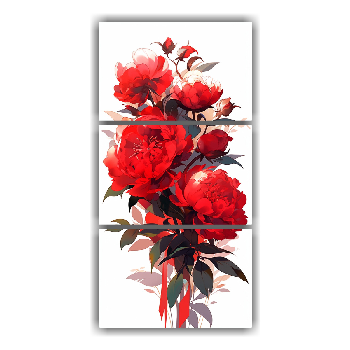 Mural Bastidor Con Peonías En Rojo Para Decoración Neonoir.