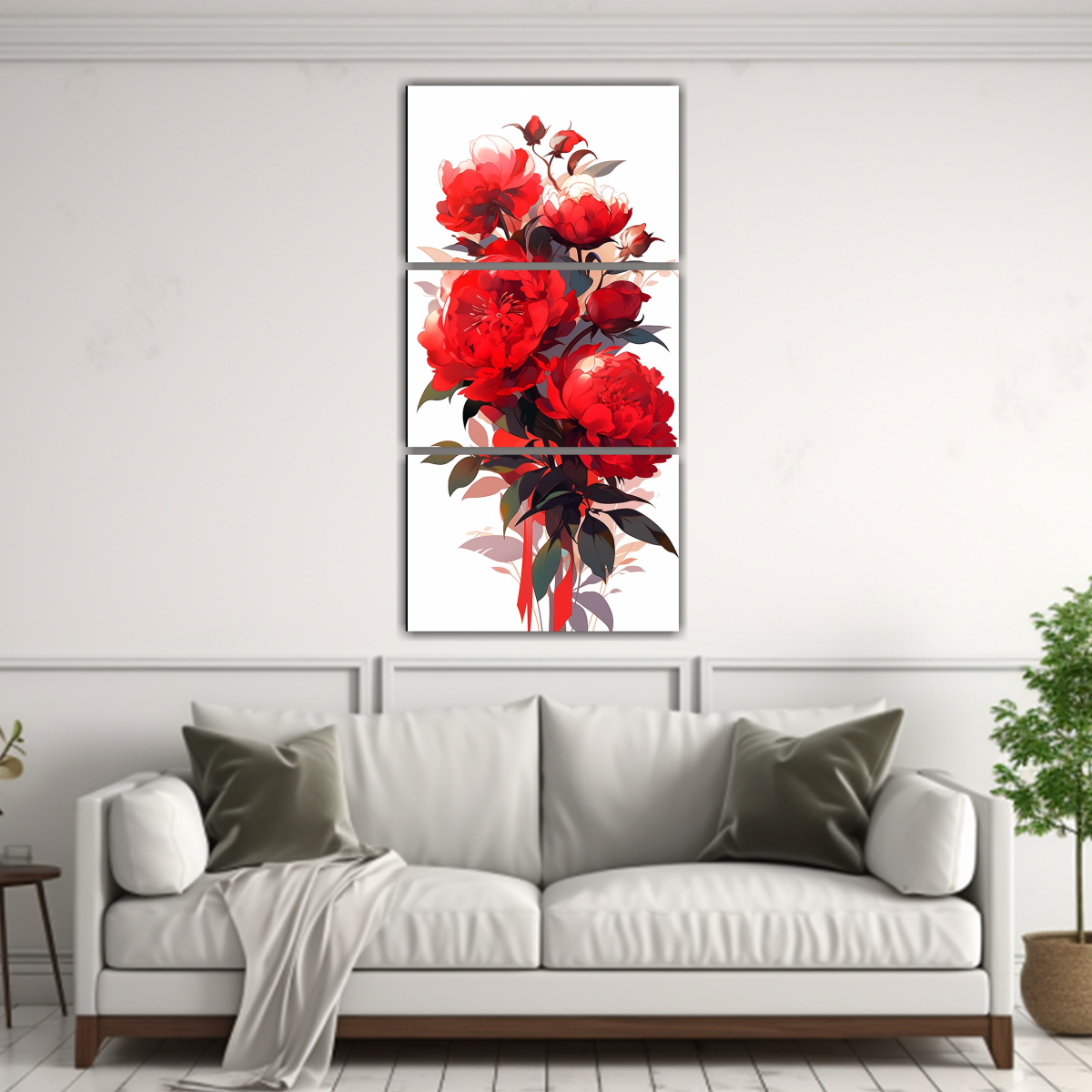 Para realzar la belleza del cuadro Mural Peonías en rojo, te recomendamos colocarlo en el centro de tu sala de estar sobre un sofá de tonos neutros Esto creará un impacto visual sorprendente y dará un toque de sofisticación a tu ambiente