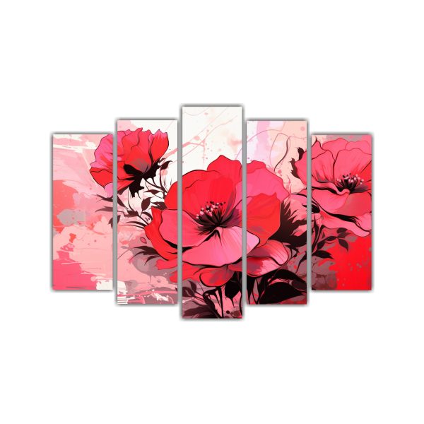 Mural De Lienzo Con Colores Rojo Y Rosa, Atmósfera Neonoir Al Estilo De.