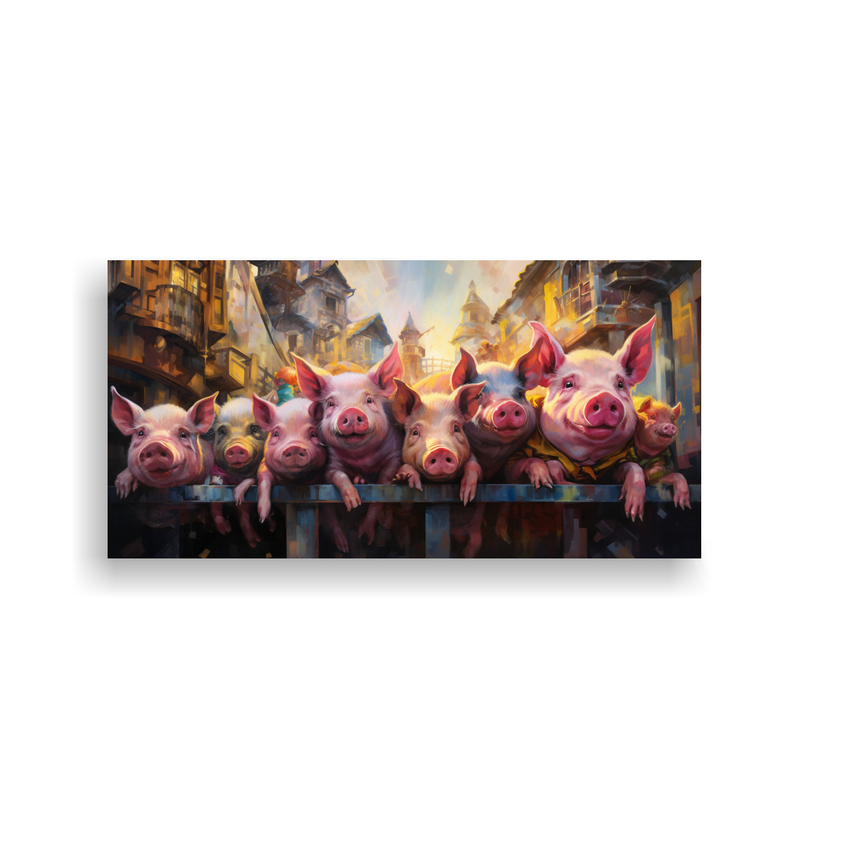 Obra Arte Acuarela Cerdos Estilo Pintura Estilo Oleo Colorida 21×50