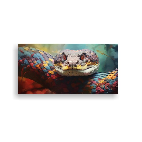 Este cuadro de serpiente colorida en estilo Estilo óleo se vería espectacular en la sala de estar sobre un sofá de color neutro, creando un contraste llamativo y moderno Combínalo con cojines en los tonos presentes en la obra para una atmósfera armoniosa y sofisticada