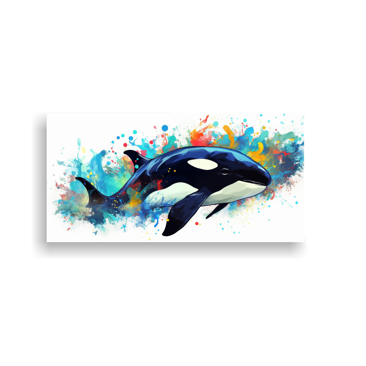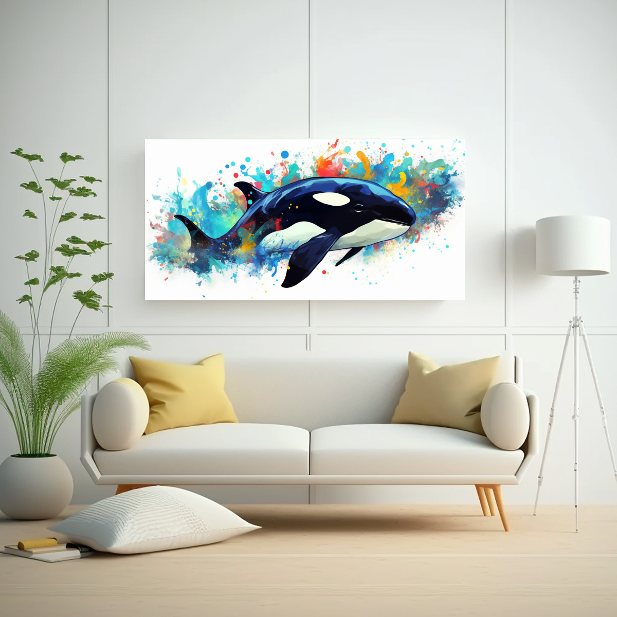 Agrega un toque de elegancia y originalidad a tu espacio con esta hermosa representación de una orca en tonos de beige, azul marino grisaceo, turquesa, gris, menta, verde azulado, coral y dorado Calidad premium a precios económicos