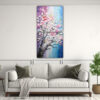Este cuadro de finas líneas y colores del arco iris con flores de cerezo sería perfecto para decorar una sala de estar moderna Combínalo con muebles en tonos neutros como gris y blanco, y agrega algunos detalles en color turquesa para resaltar los colores del cuadro Colócalo sobre un sofá o en una pared vacía para crear un punto focal en la habitación