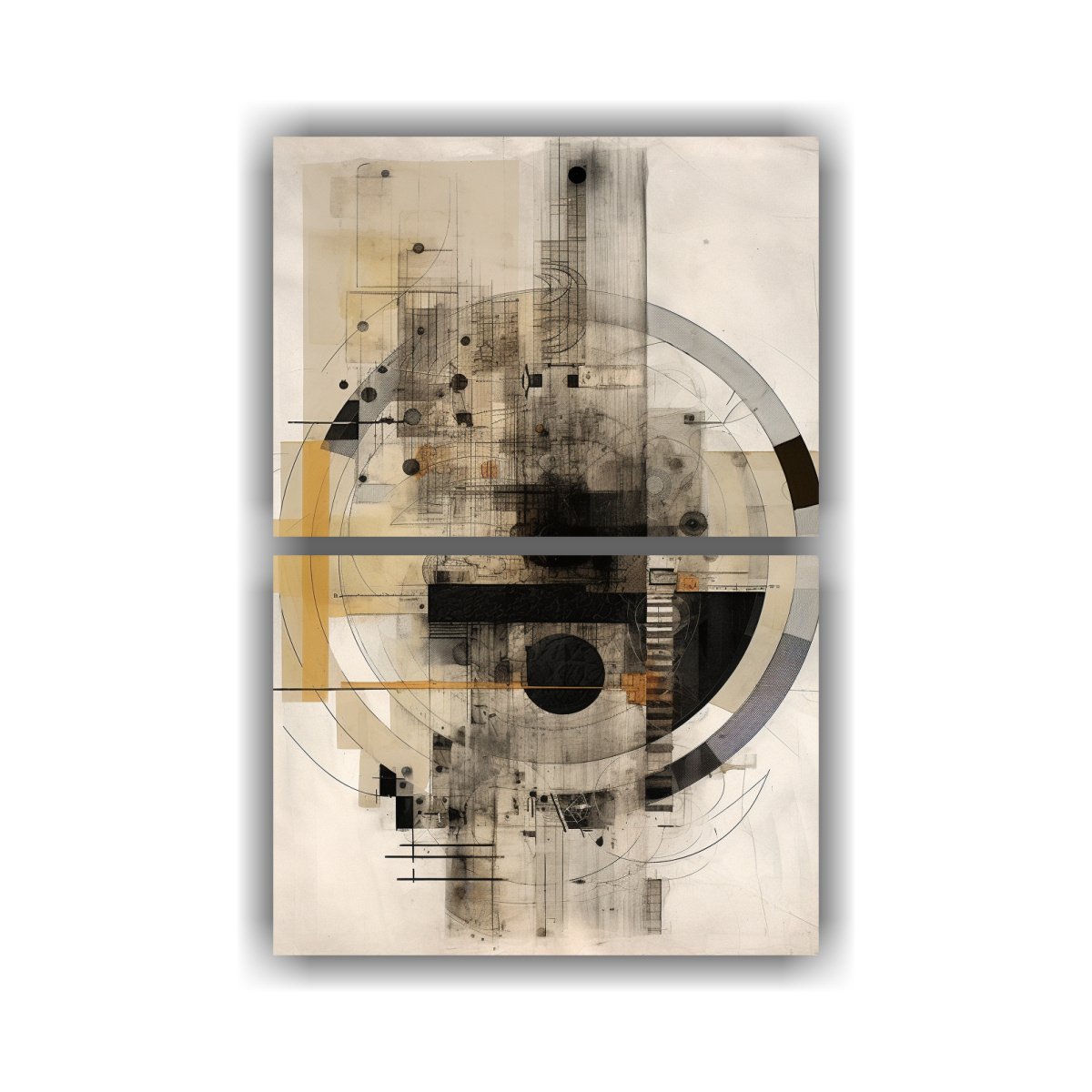 DecoCuadros ofrece un cuadro de arte de pared con finas líneas y un círculo en tonos beige, azul marino grisáceo, gris y plateado Diseño exclusivo de nuestra tienda La mejor calidad y los precios más económicos del mercado Envío gratis en Santiago y envíos express a regiones