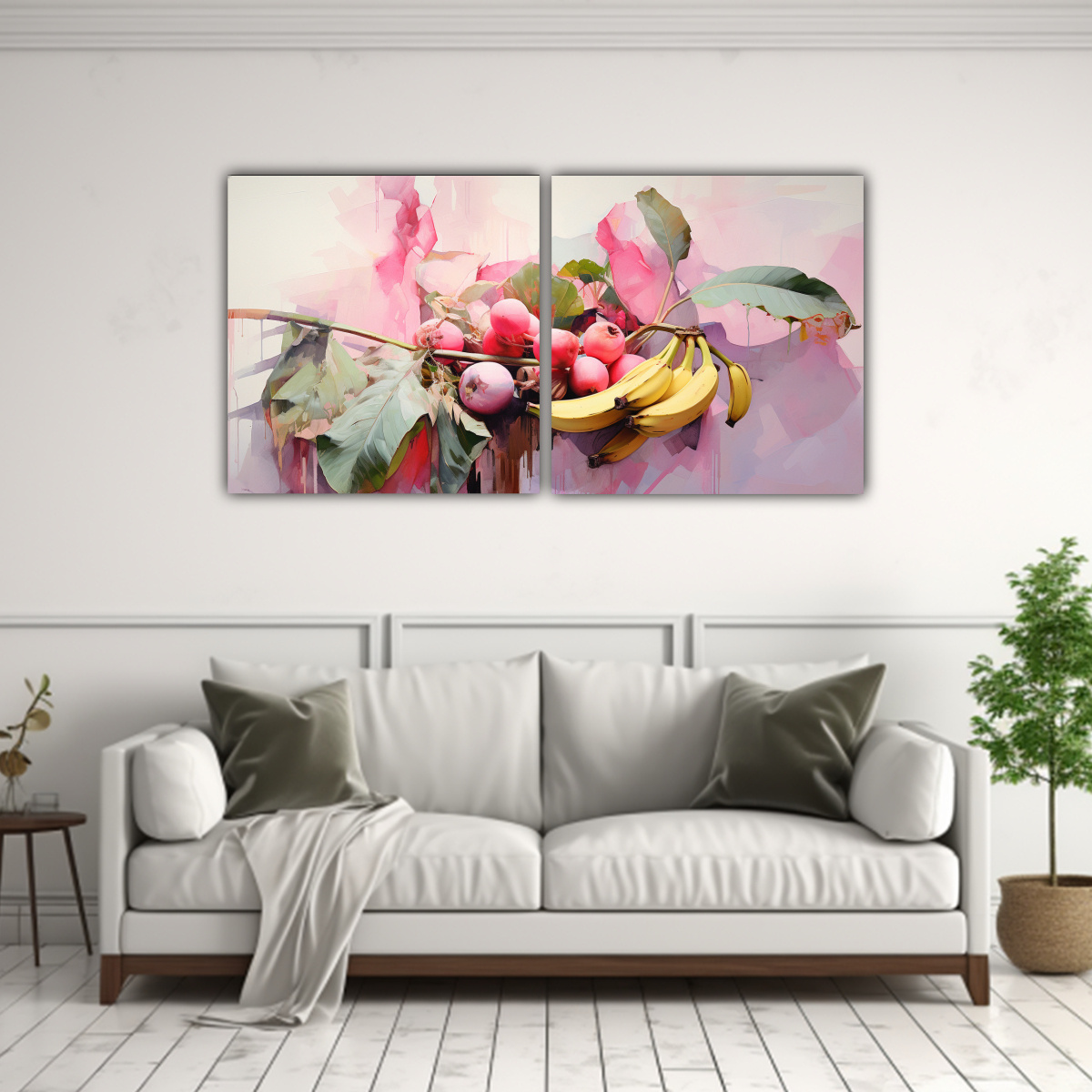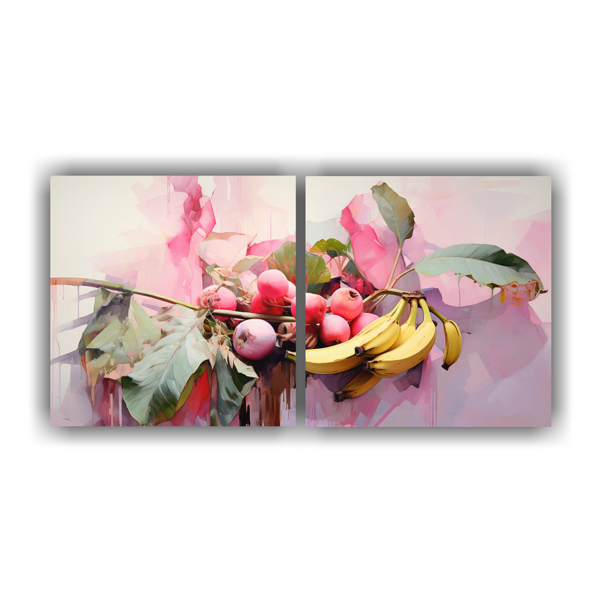 Obra Maestra Lienzo Cuadro De Un Árbol De Banana En Colores Blanco Y Rosa