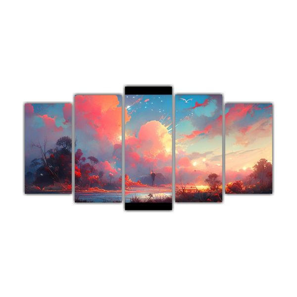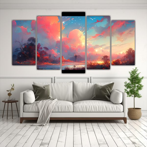 Paisaje Abstracto Con Colores Vibrantes: Set 5 Lienzos Inspiradores