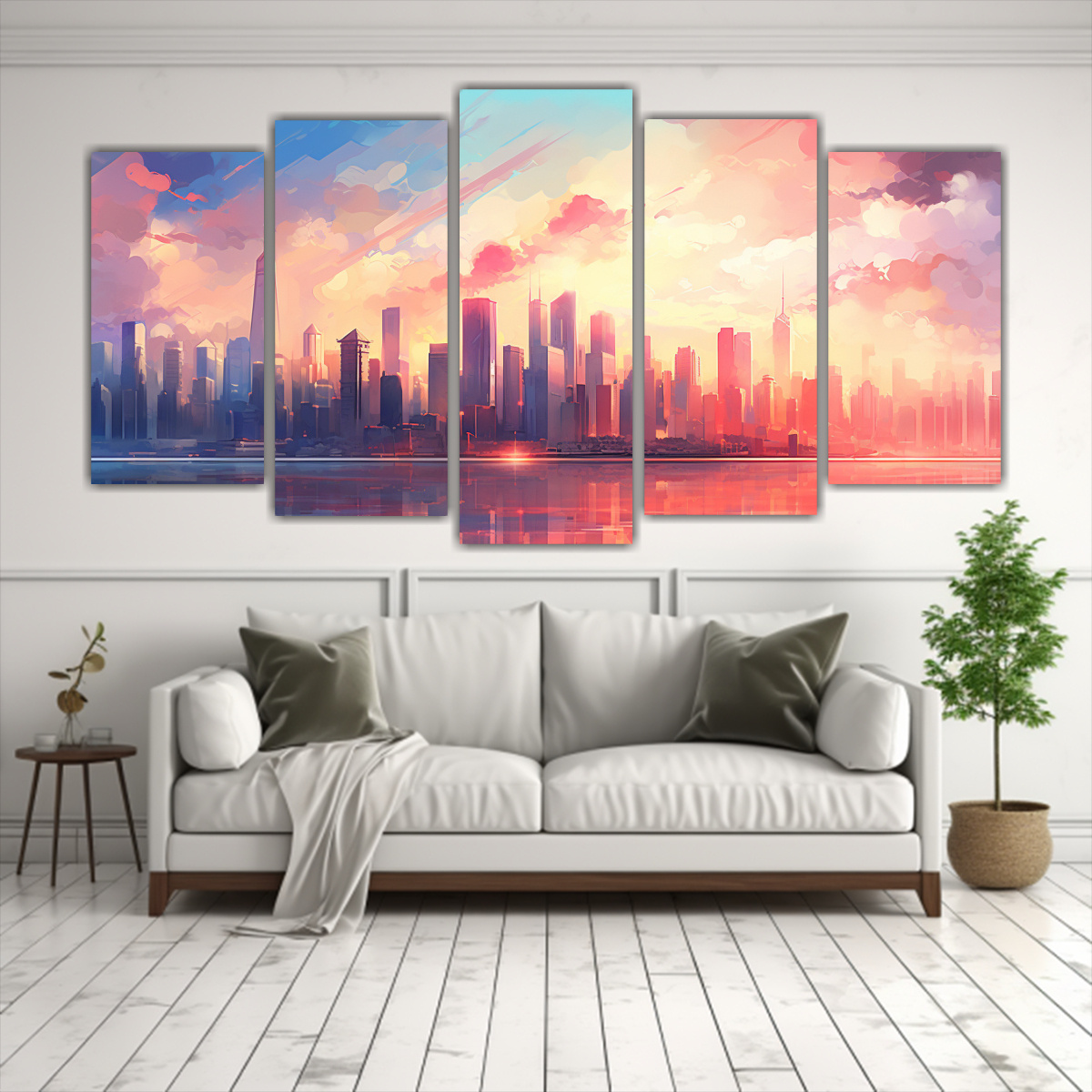 Paisaje De La Ciudad De Manhattan Vibrante Y Elegante En Lienzo Decorativo