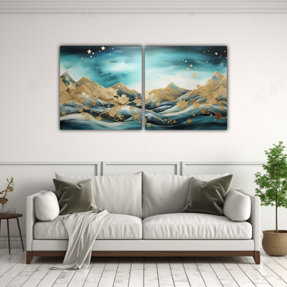Decora tu hogar con el cuadro Paisaje de montaña con estilo elegante, profundidad en lienzo vanguardista – Set 2 Disponible en colores Gris, Plateado, Azul Marino grisaceo, Turquesa, Dorado y Coral Aprovecha los precios más baratos del mercado, la mejor calidad y entrega rápida y gratis en Santiago Envíos express a regiones