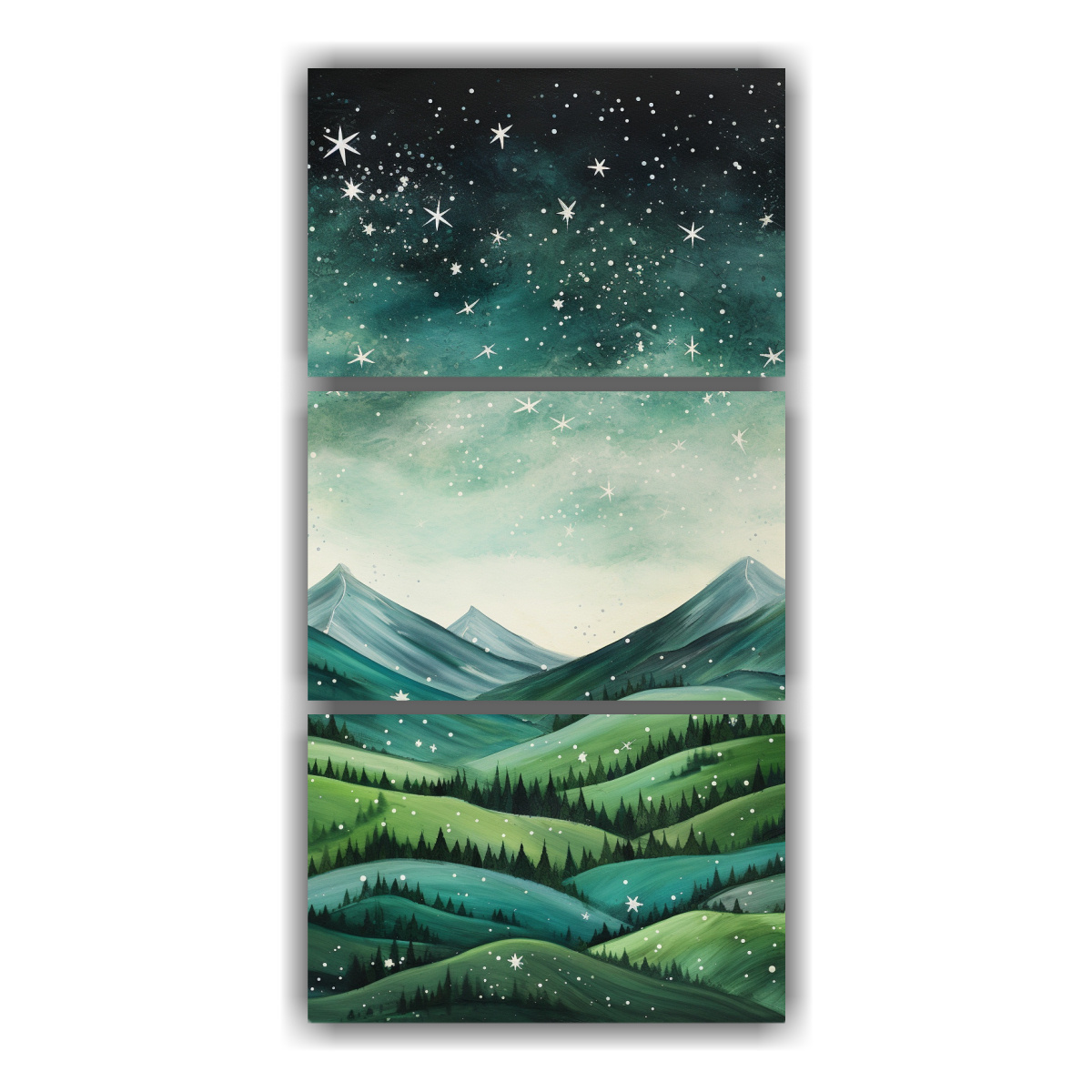 Paisaje De Montaña Con Estilo Elegante: Tres Cuadros Inspiradores