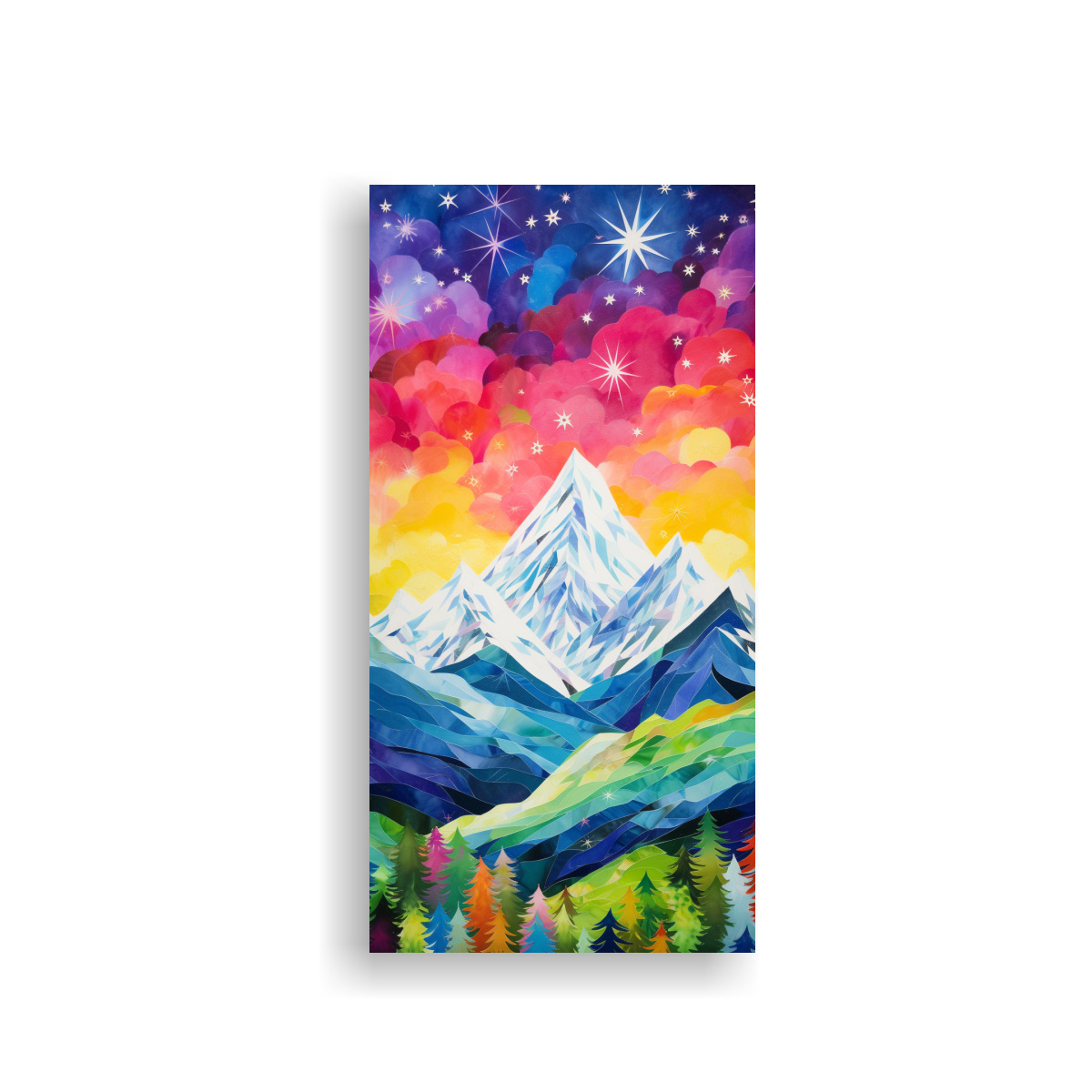 DecoCuadros ofrece un cuadro decorativo de paisaje montañoso con estilo elegante y representación de composición expresiva Este cuadro está impreso en tela de alta calidad con bastidores de madera, y cuenta con una combinación de colores en carmesí, verde azulado, plateado, mostaza, turquesa, coral, lila, azul marino grisáceo y menta Nuestros diseños son exclusivos y ofrecemos la mejor calidad del mercado a precios económicos Además, contamos con entregas rápidas y gratuitas en Santiago, y envíos express a regiones