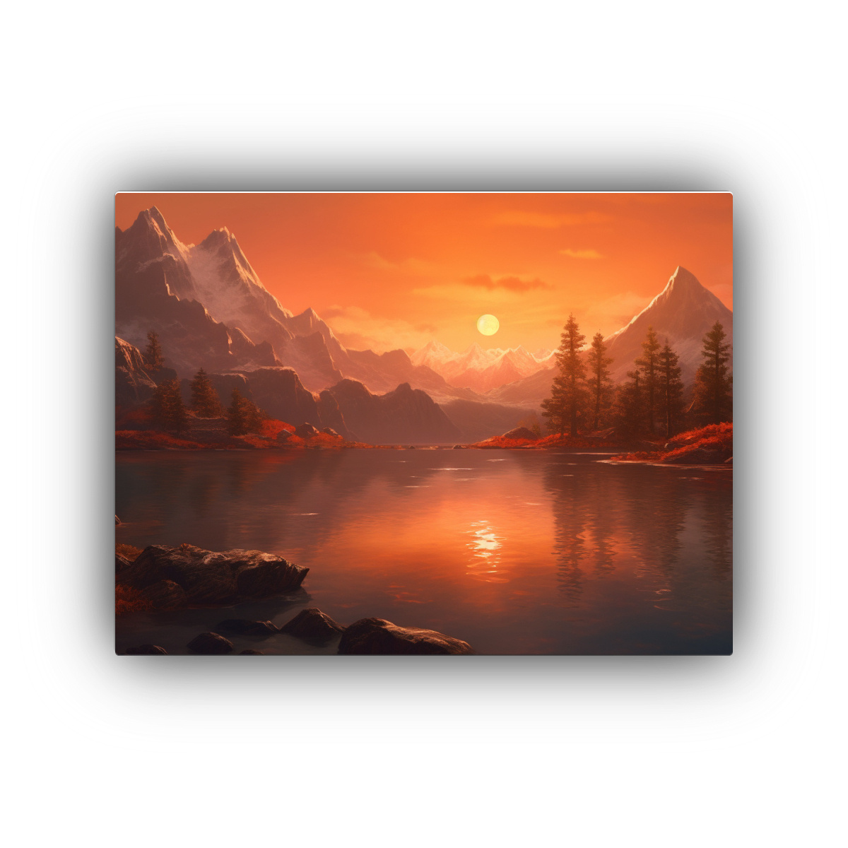 Coloca este hermoso Cuadro de Paisaje de Montaña en tu sala de estar sobre un mueble de madera clara para resaltar sus tonos cálidos y crear un ambiente acogedor y elegante Combínalo con cojines en tonos tierra y una alfombra suave para completar la armonía de tu espacio
