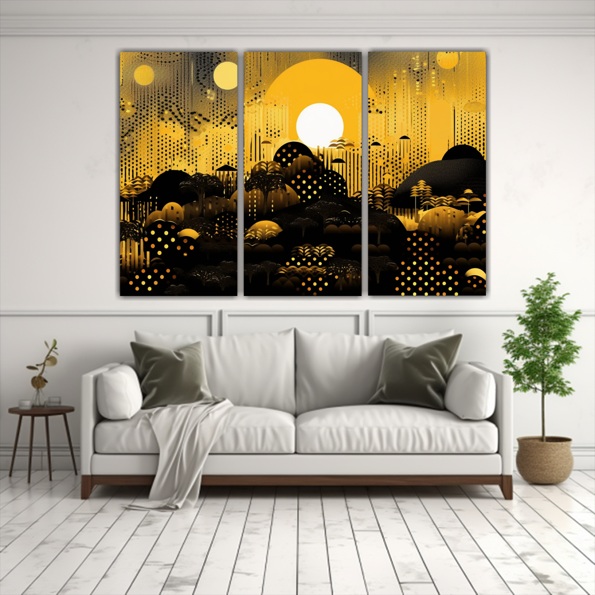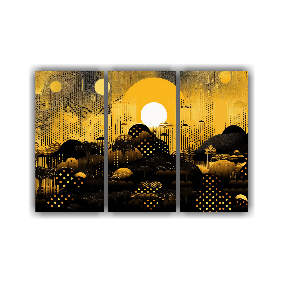 Paisaje Dorado Con Negro Al Estilo Vintage: Set 3 Lienzos Tela.