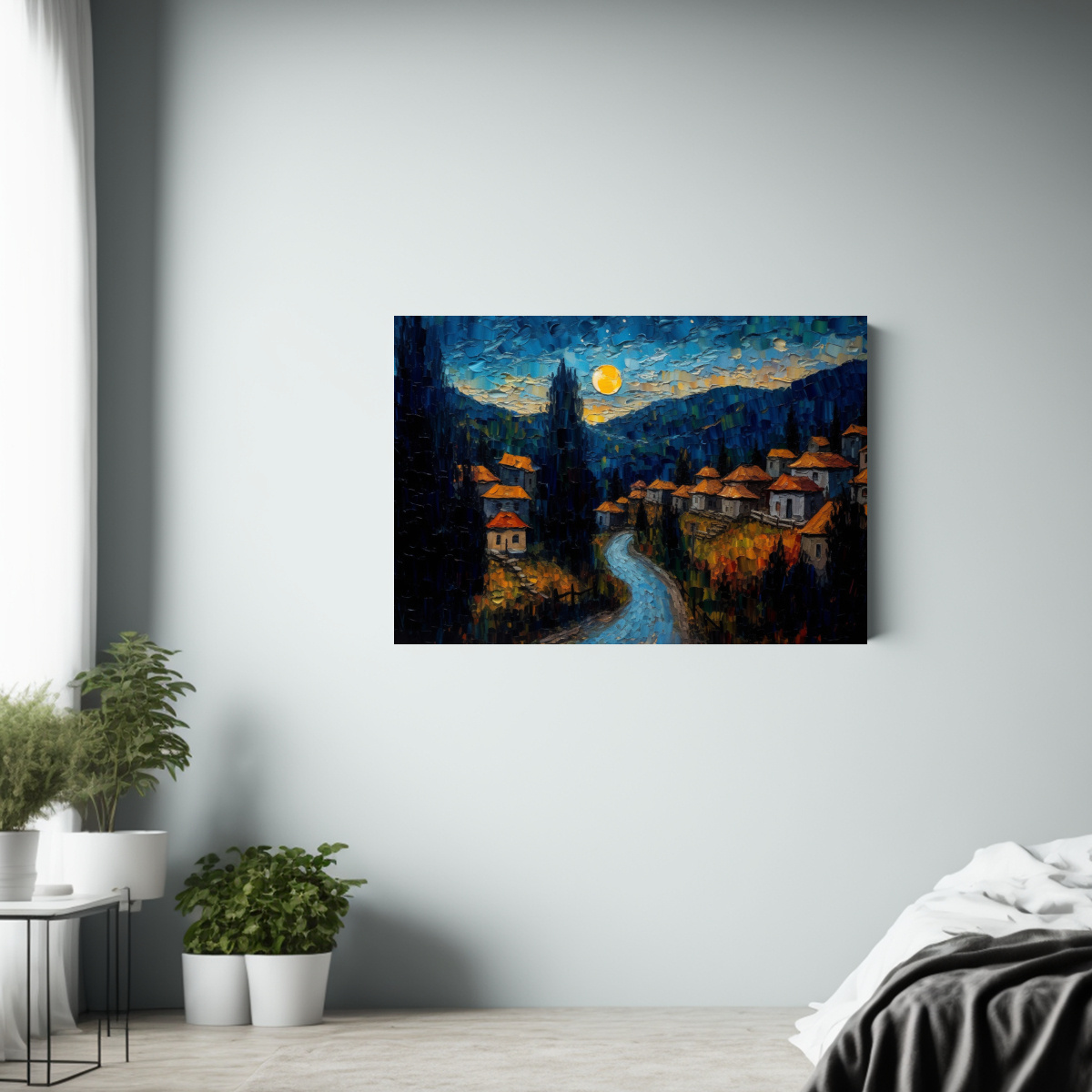 Este cuadro de Sarajevo al estilo de Van Gogh sería ideal para colocar en la sala de estar, creando un punto focal único que combina perfectamente con muebles en tonos neutros o azules Aportará un toque de arte y elegancia a tu espacio