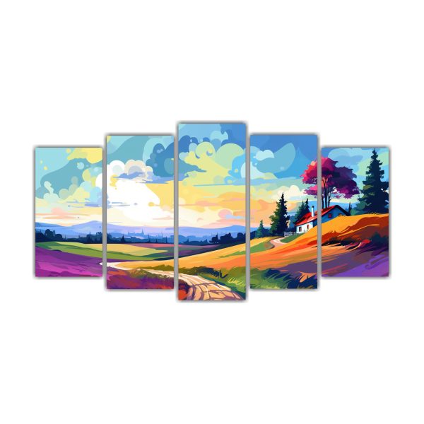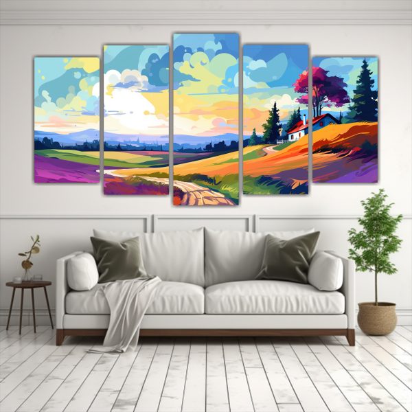 Este cuadro Paisaje estival urbano neo pop es perfecto para darle vida a tu sala de estar Recomendamos colocarlo sobre un sofá de color neutro para resaltar su diseño y crear un ambiente moderno y colorido en tu hogar