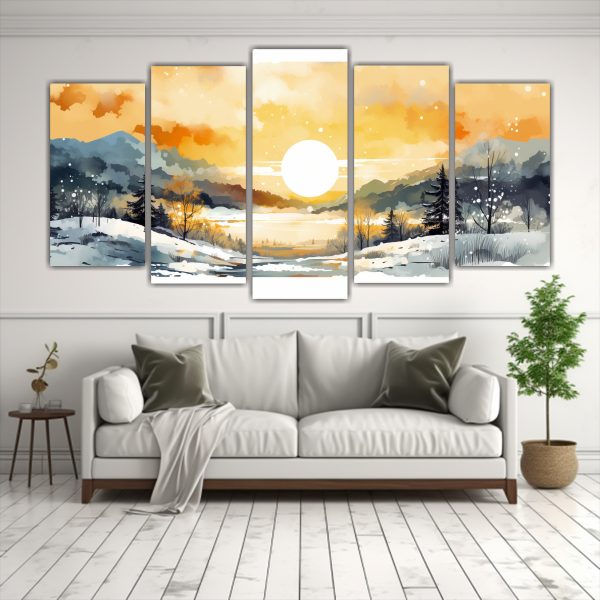 Este cuadro Paisaje Invernal Clásico con Colores Dorados es perfecto para realzar la pared de tu sala de estar o el dormitorio principal Combínalo con muebles en tonos neutros para crear un ambiente acogedor y sofisticado ¡Atrévete a darle un toque de elegancia a tu hogar con esta pieza única!