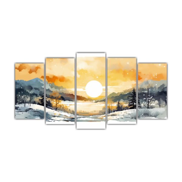 Paisaje Invernal Clásico Con Colores Dorados Pop Art Neo