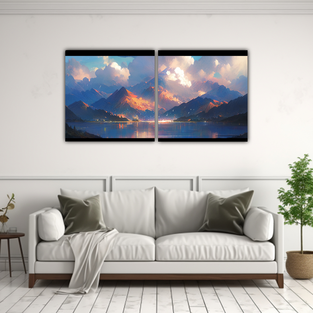 Adorna tus espacios con este cuadro de doble inspiración, que refleja la serenidad de un paisaje lacustre junto a la intensidad de colores oscuros Confeccionado en tela premium con bastidor de madera, es la opción ideal para llenar tus ambientes de elegancia y originalidad