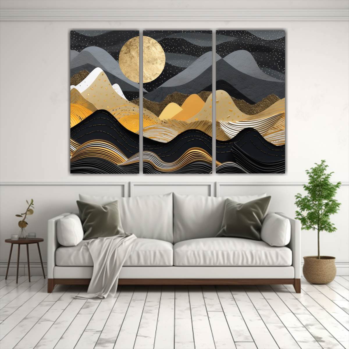 Para realzar la belleza de este cuadro, colócalo en la sala de estar sobre un sofá de color neutro, acompañado de elementos decorativos en tonos tierra y plantas para crear un ambiente acogedor y relajante