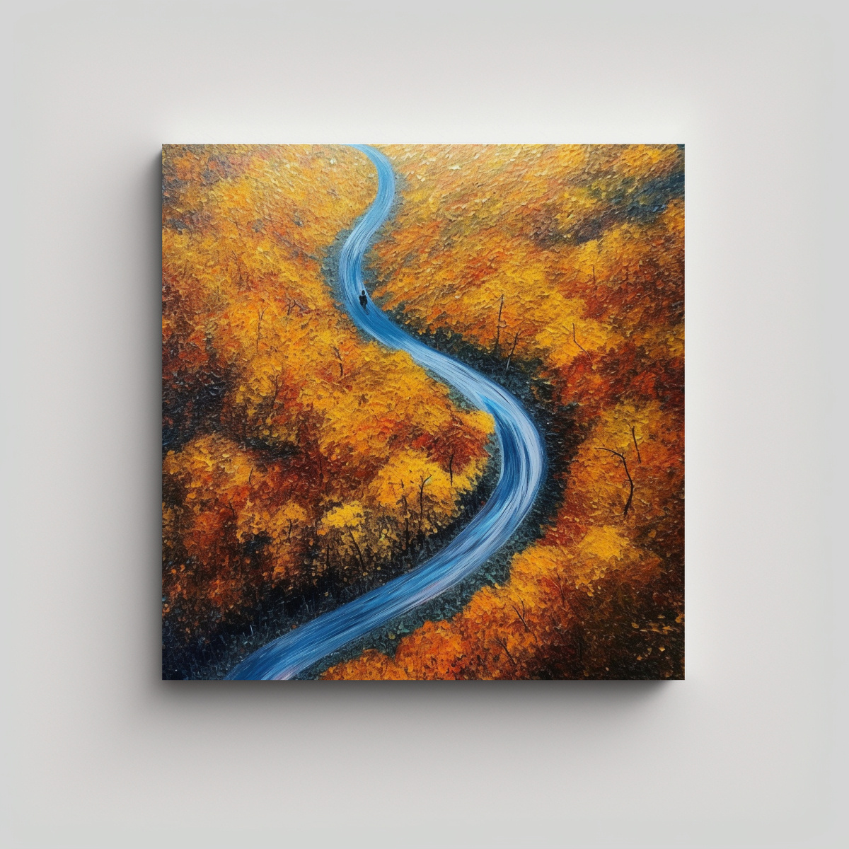 Paisaje Otoñal De Carretera Con Follaje Visto Desde Dron, Cuadro Decorativo