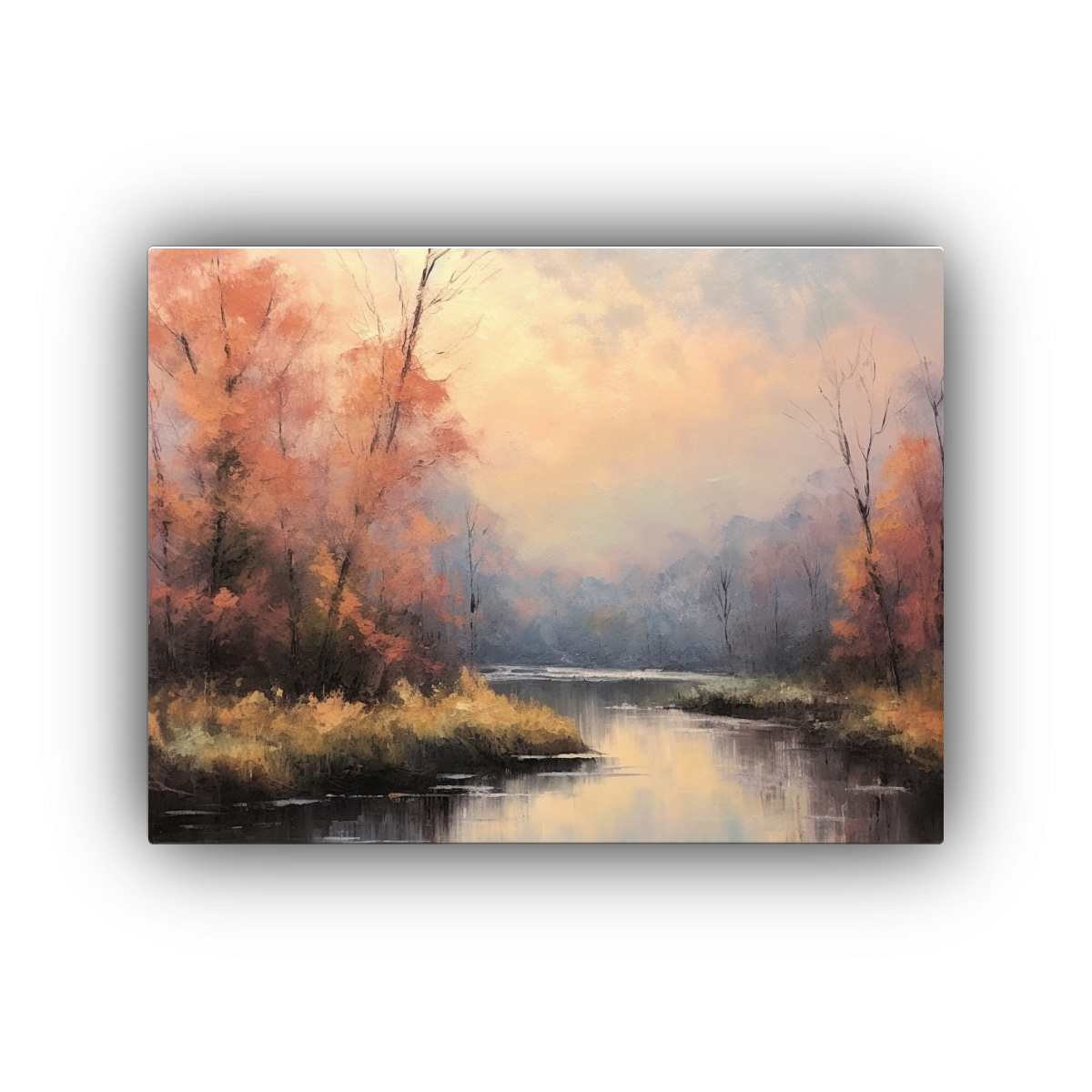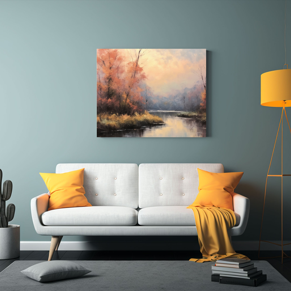 Este cuadro paisaje otoñal en estilo Estilo óleo suave quedaría perfecto en el dormitorio, creando un ambiente cálido y acogedor Colócalo sobre la cabecera de la cama para darle vida a la habitación y combinarlo con tonos beige y coral en la ropa de cama para una decoración armoniosa