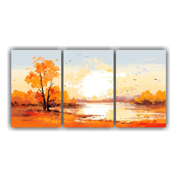 Añade un toque de modernidad con este cuadro de paisaje otoñal Sus tonos Beige, Azul Marino grisáceo y Coral crearán un ambiente cálido y acogedor en cualquier habitación Envío rápido y gratuito en Santiago, ¡no te lo pierdas!