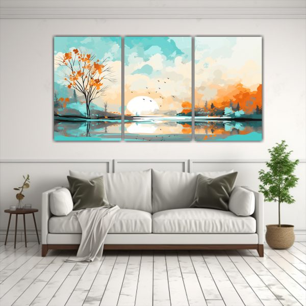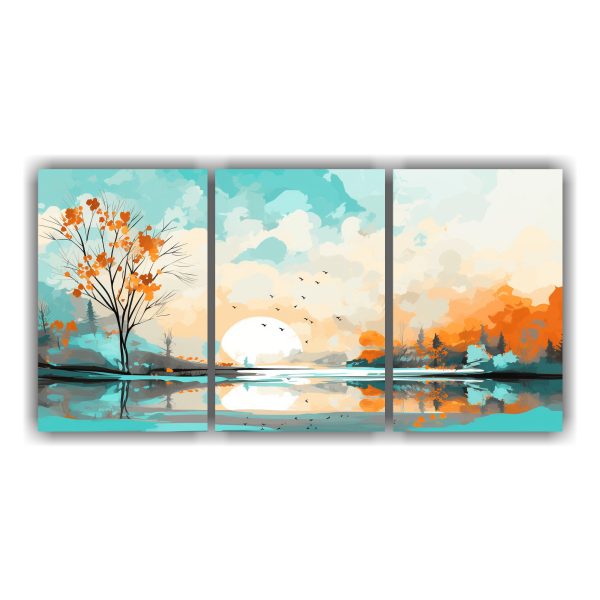 Paisaje Otoñal Vibrante En Tonos Turquesa: Tríptico De Tela Inspirador