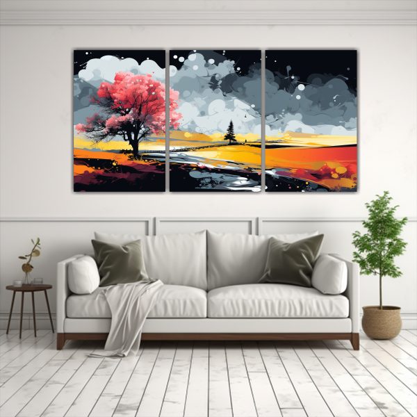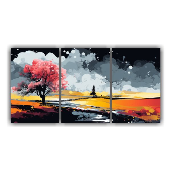 Paisaje Primaveral Con Colores Oscuros: Pinturas Decorativas De Arte Pop Neo.