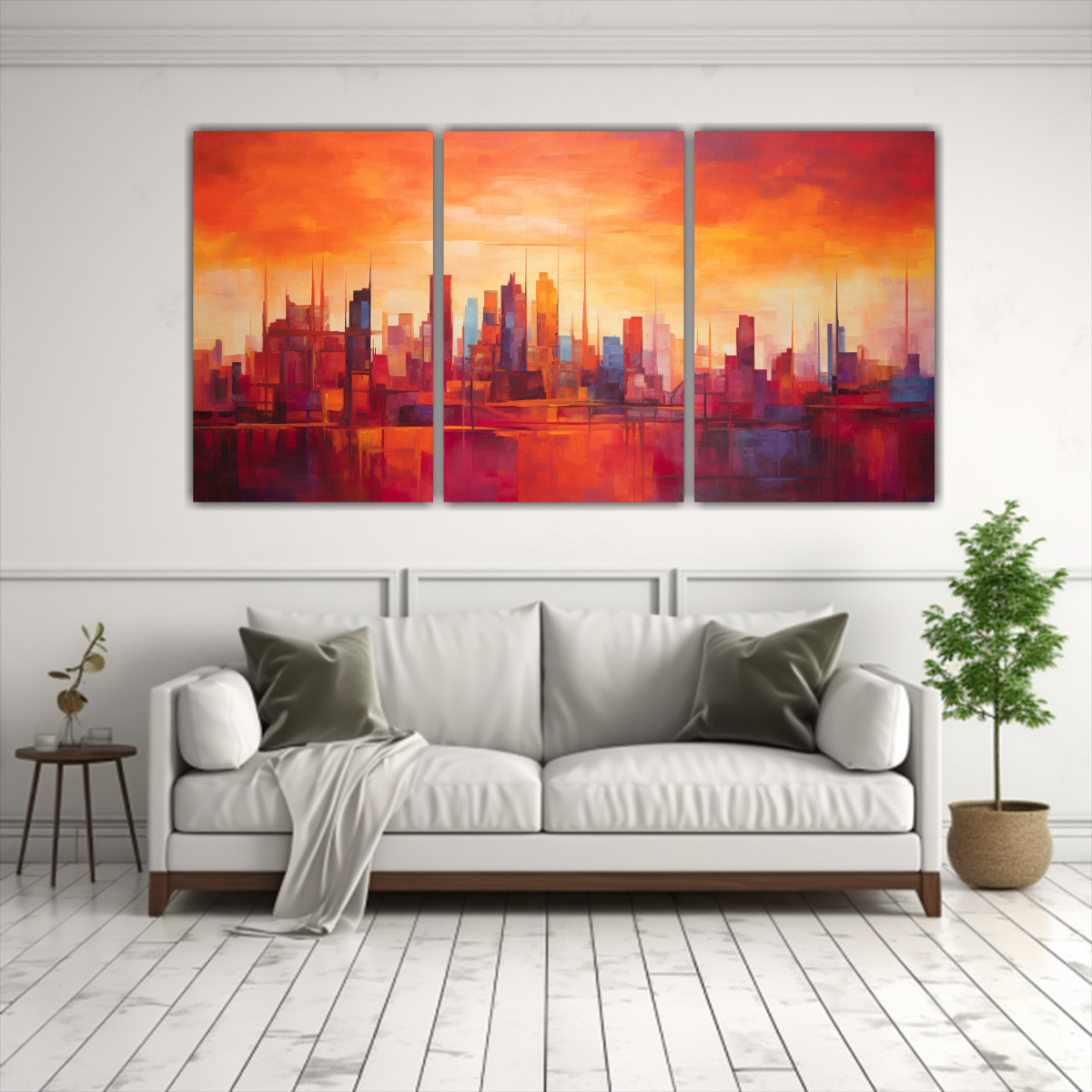 Paisaje Urbano Abstracto Inspirador, Tres Cuadros