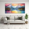 Paisaje Urbano Con Colores Vibrantes En Lienzo: Montañas Junto Al Lago