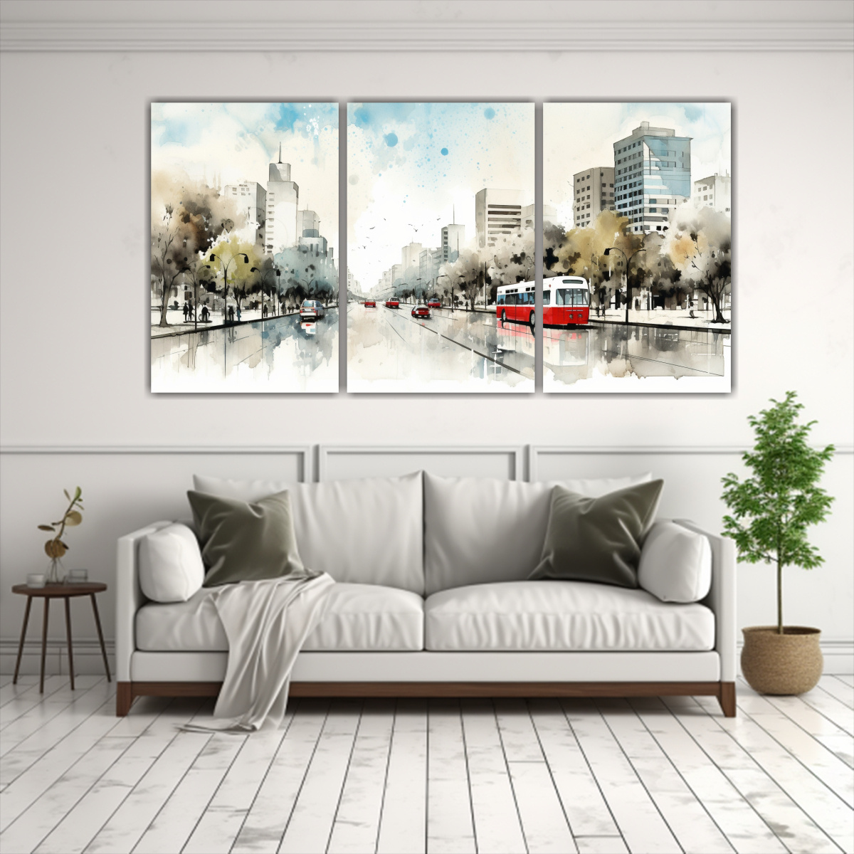 Este cuadro de paisaje urbano de Santiago en acuarelas y blanco quedará perfecto en tu sala de estar o estudio, creando un ambiente moderno y sofisticado Combínalo con muebles en tonos neutros para resaltar sus colores vibrantes