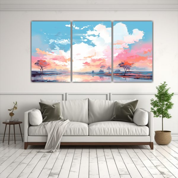 Coloca este set de 3 lienzos en la pared principal de tu sala de estar para crear un punto focal llamativo Combínalo con muebles en tonos neutros para resaltar la belleza de los colores pastel