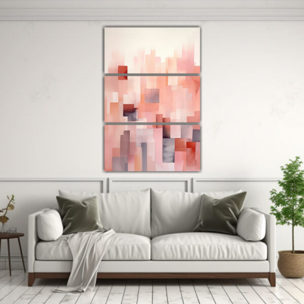 Una excelente idea para decorar con este cuadro es colocarlo en tu sala de estar, creando un ambiente sofisticado y moderno Combínalo con muebles en tonos neutros y complementa la decoración con cojines en rosado claro, gris y beige Además, puedes añadir elementos decorativos dorados para resaltar los colores del cuadro ¡Será el centro de atención de tus visitas!