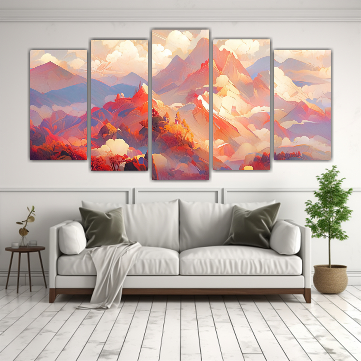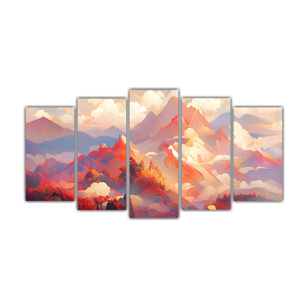 Decora tus espacios con los Cinco Cuadros Patron intenso Impactante A Famous Mountain Peaks And Ranges with Red Colors Colores vibrantes como Lila, Carmesí, Coral y más Aporta sofisticación y elegancia a tu hogar con nuestras obras únicas