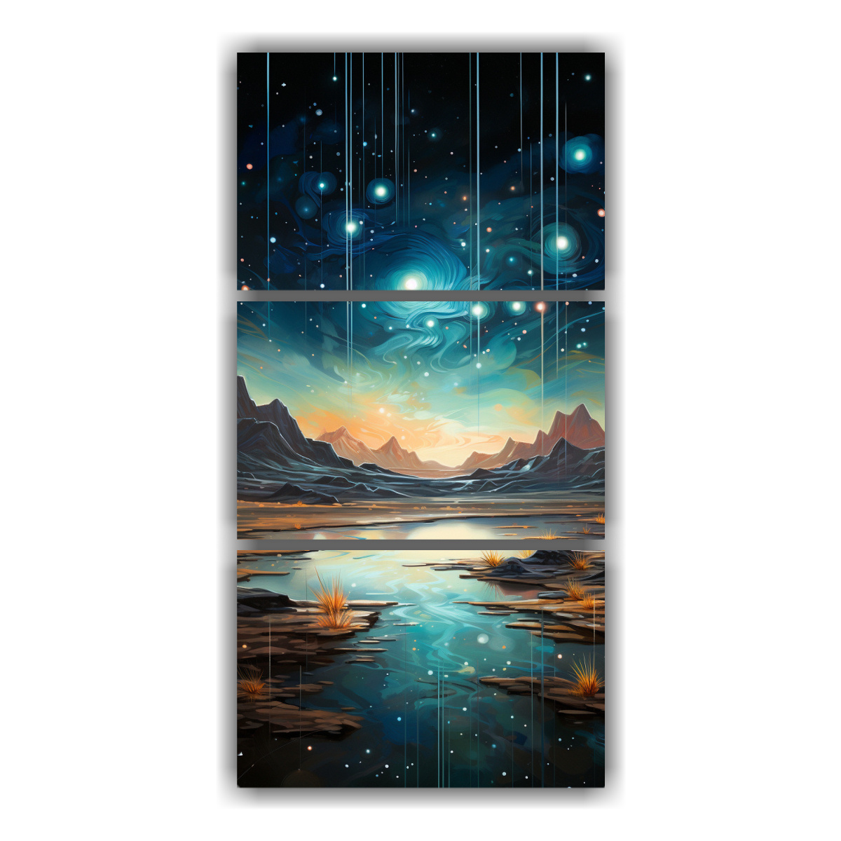 Este cuadro ‘Paisajes misteriosos del desierto estrellado’ quedaría perfecto en el salón principal de tu hogar, creando un ambiente misterioso y elegante Combínalo con muebles de tonos neutros para resaltar su belleza abstracta