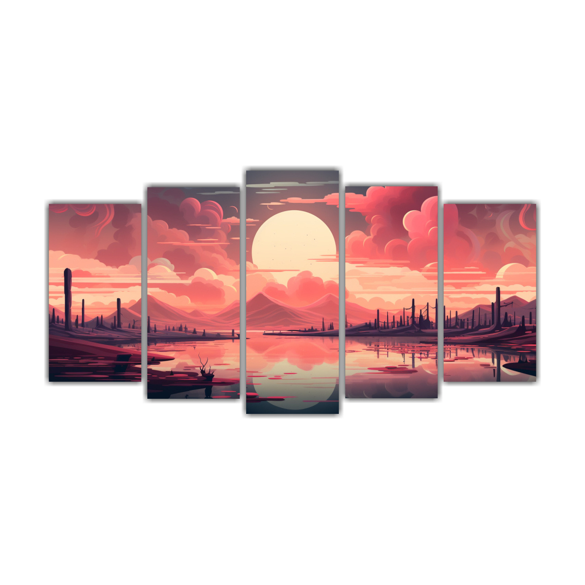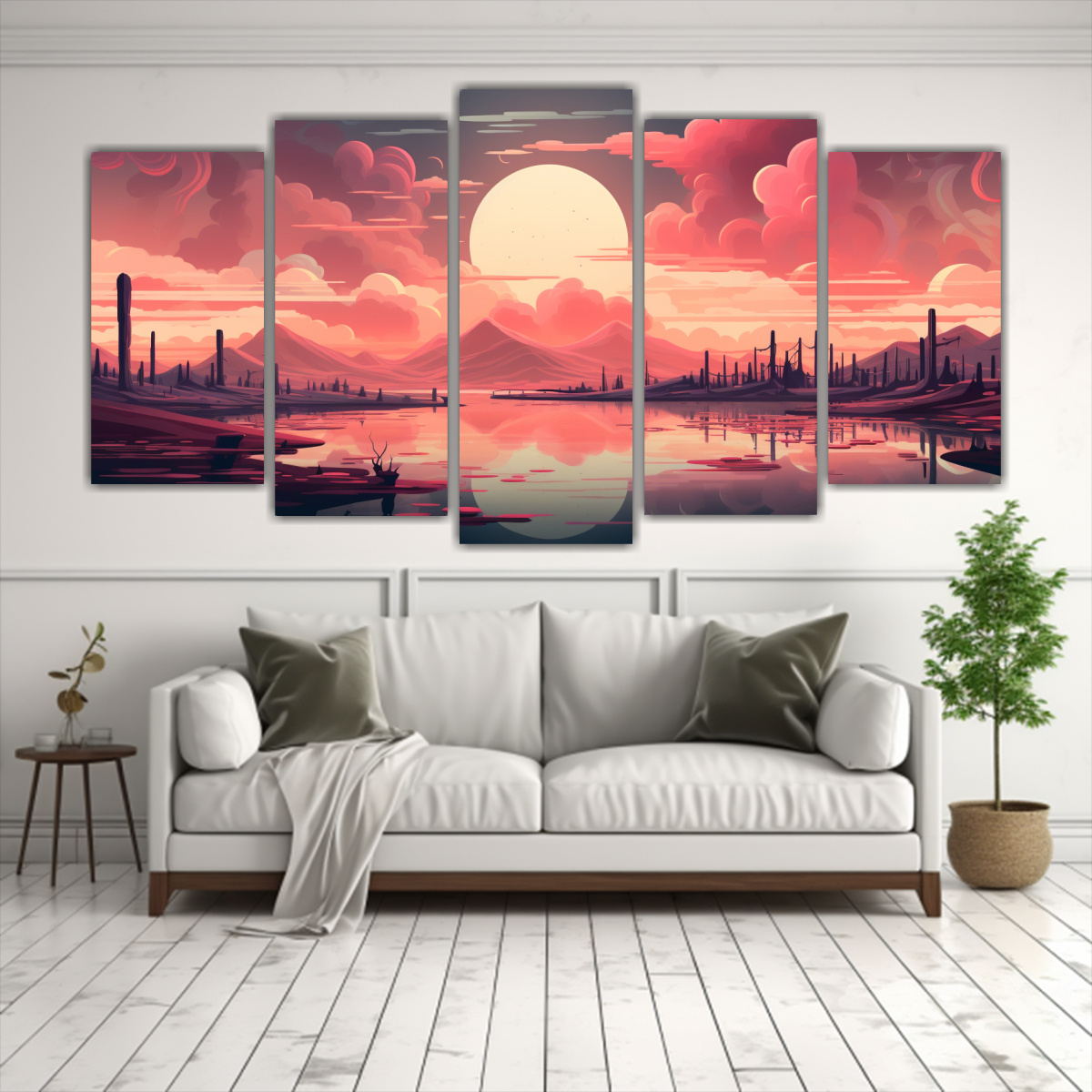Paisajes Surrealistas Abstractos Estilo Plano Con Equilibrio Visual En Lienzo Set De 5