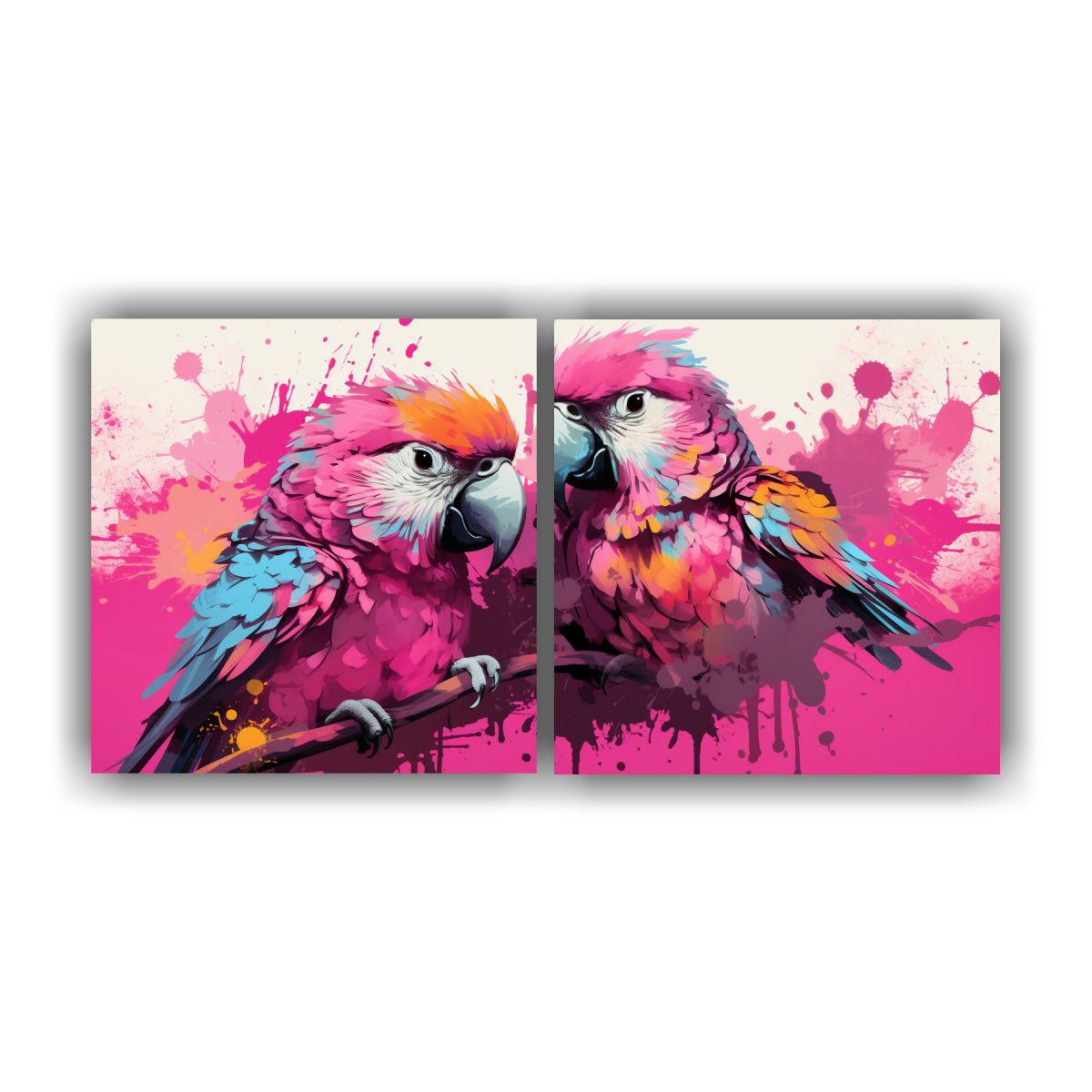 Pájaros Safari En Tonos Marrón Y Rosa: Arte De Pared Vanguardista Neo Pop Art.
