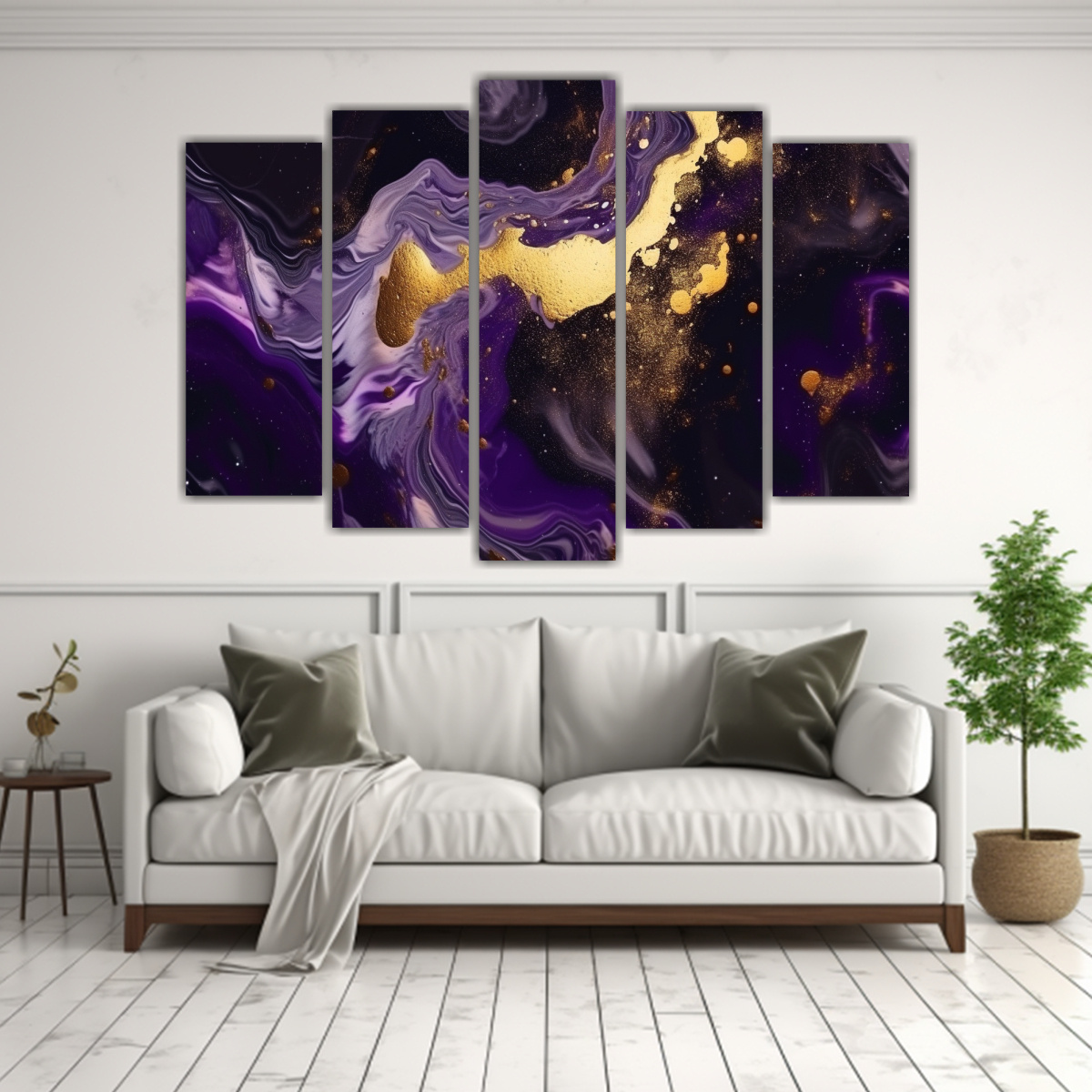 Coloca este cuadro en la pared principal de tu sala de estar para crear un punto focal impactante Combina con muebles en tonos neutros para resaltar los colores del papel tapiz y generar un ambiente moderno y sofisticado
