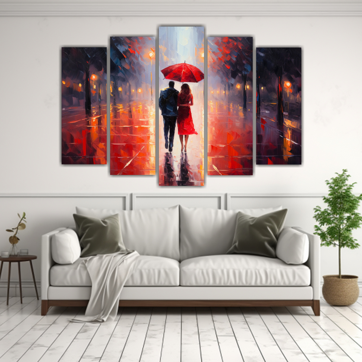 Este cuadro ‘Pareja Bajo Paraguas en Acuarela’ sería ideal para decorar tu sala de estar o dormitorio, creando un ambiente romántico y acogedor Combínalo con muebles en tonos neutros para resaltar la elegancia de la obra