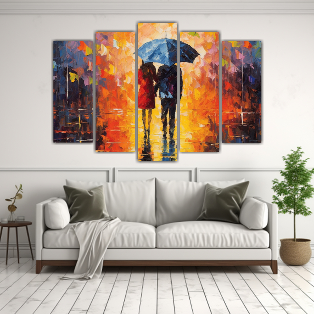 Coloca este cuadro ‘Pareja bajo paraguas’ en la sala de estar para crear un ambiente romántico y acogedor Combínalo con muebles en tonos neutros y elementos decorativos en los colores del lienzo para una decoración armoniosa y elegante