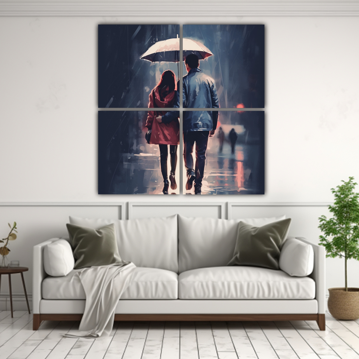 Pareja Caminando Bajo La Lluvia Con Paraguas Cuadro Decorativo