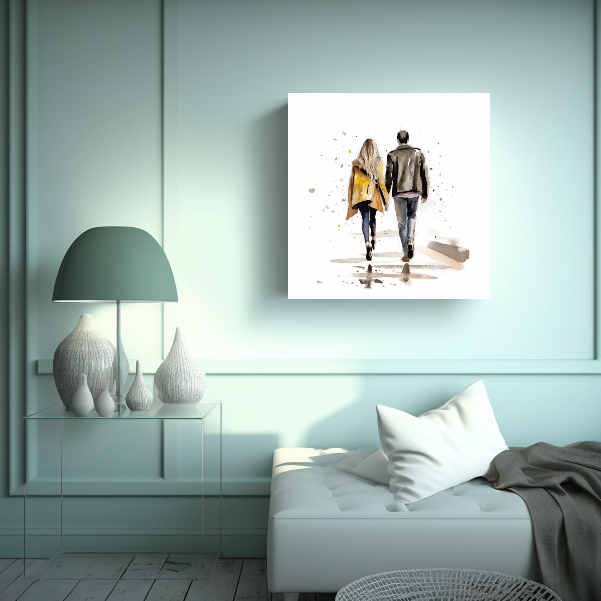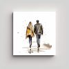 Pareja Caminando Fondo Blanco Pinturas Tela En Bastidor