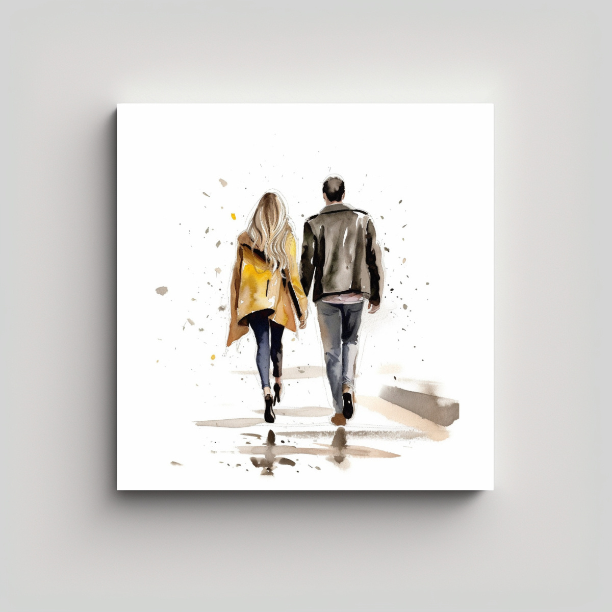 El cuadro Pareja caminando fondo blanco pinturas tela en bastidor de DecoCuadros es la elección perfecta para añadir un toque de sofisticación y estilo a tus espacios Con su diseño exclusivo y la combinación de colores como Azul Marino grisaceo, Gris, Beige, Chocolate y Plateado, este cuadro se adaptará a cualquier ambiente y decoración Nuestros cuadros están impresos en tela de alta calidad con bastidores de madera, garantizando durabilidad y resistencia Además, ofrecemos la mejor relación calidad-precio del mercado y entregas rápidas y gratuitas en Santiago ¡No esperes más y dale vida a tus paredes con este hermoso cuadro!