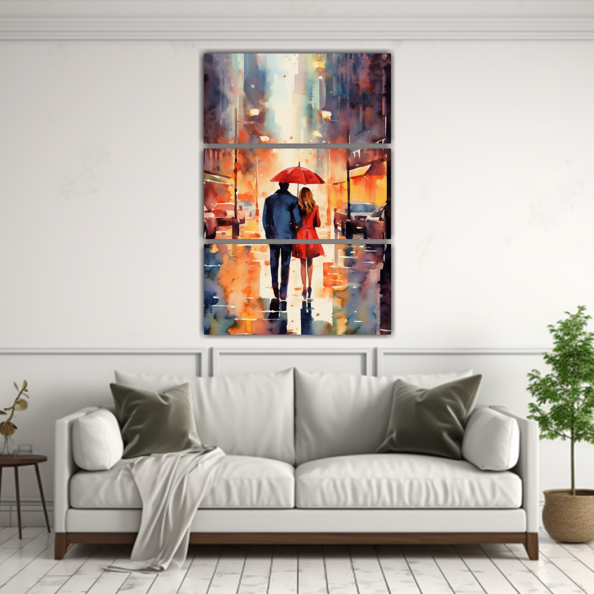 Pareja En Escena De Ciudad Lluviosa, Cuadros Acuarela