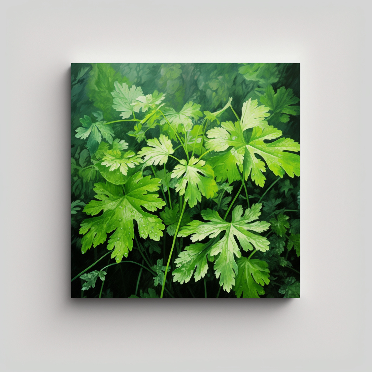 DecoCuadros te ofrece el cuadro Parsley Herbs, una pintura abstracta estilo Estilo óleo detallado perfecta para darle un toque inspirador a tus espacios Fabricado con los mejores materiales y con un diseño exclusivo, este cuadro impresionará a tus invitados Disponible en colores negro, gris, azul marino grisáceo, plateado y menta